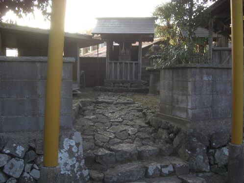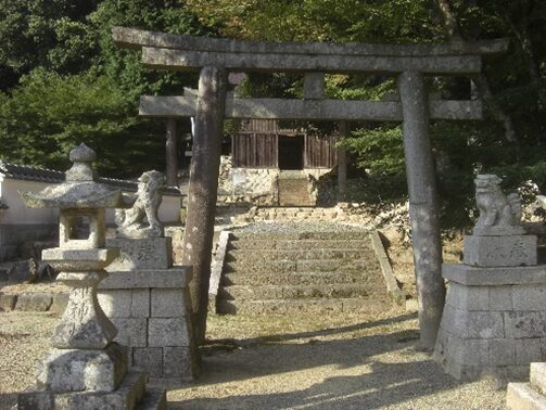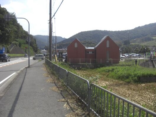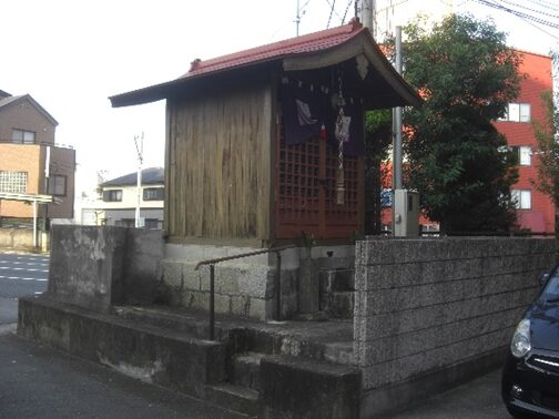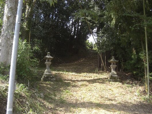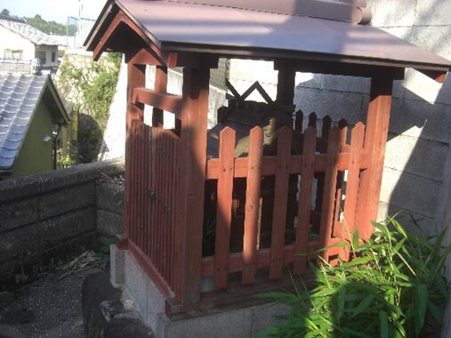 下りきったところのT字路の左側にある 畝野宝來稲荷神社