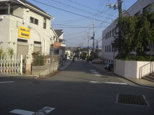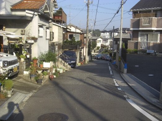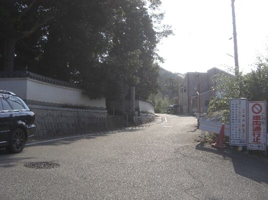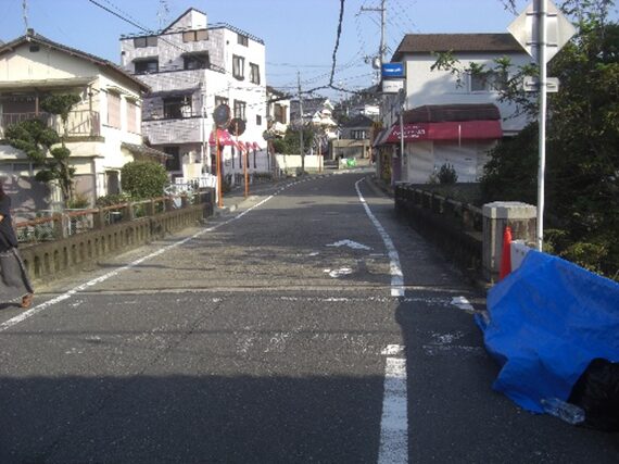 橋の先の坂を上り一筋目を右鋭角に折れます