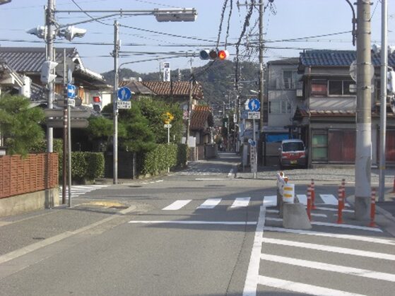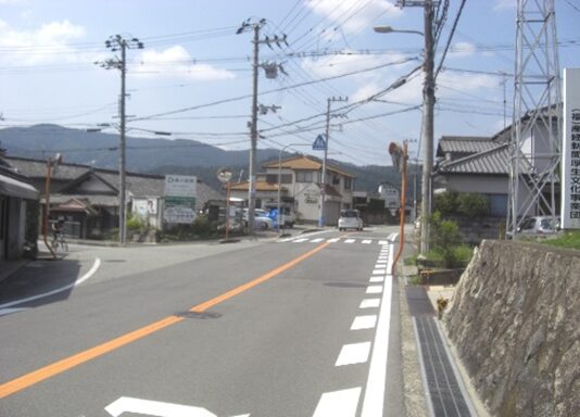 小学校前の道を北西に進み、元の辻の交差点に戻り右に折れて街道を進む
