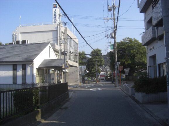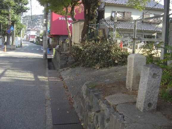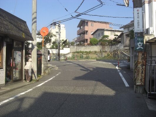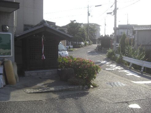 交差点の直先を右斜めに下る道を入る左角に小詞がある