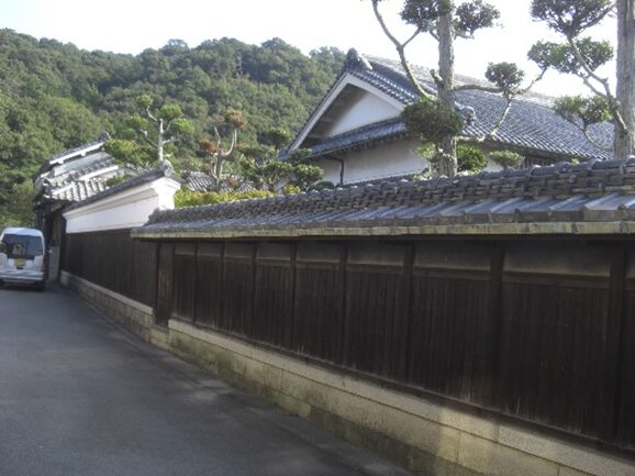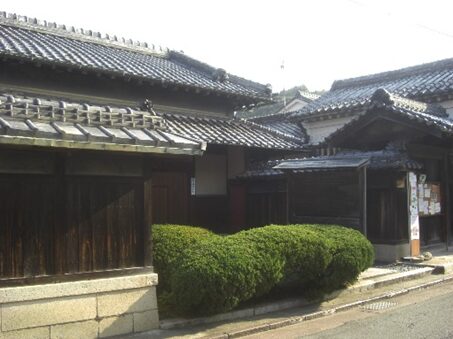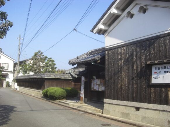 右手に豪壮な旧家の建物が川西市郷士館(休館日)、多田銀銅山ゆかりの製錬所を営んでいた