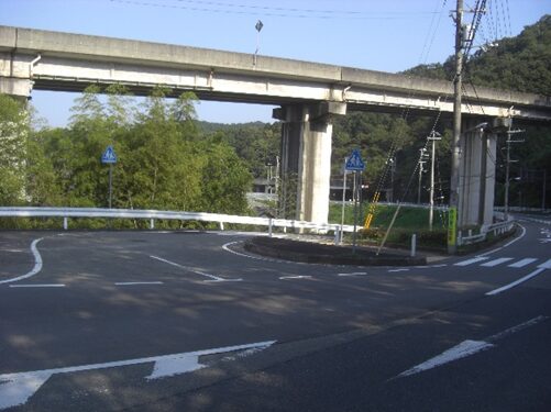 篠山市に入ったところで173号線の高架を潜り、東側に出るがすぐまた左に旧カーブして再び173号線を潜る