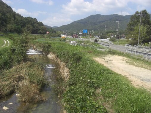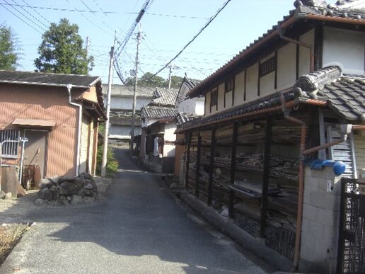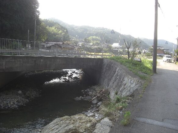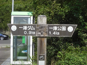 交差点の先で一庫大路次川n架かる橋を渡り一庫の集落に入る。本来ならすぐ右に折れて川沿いに街道は進むが、あまり変化がないので橋を渡って真っ直ぐ細い道を上る道を進んだ