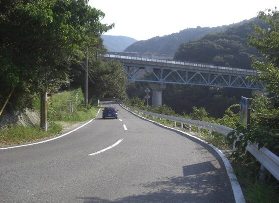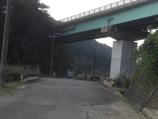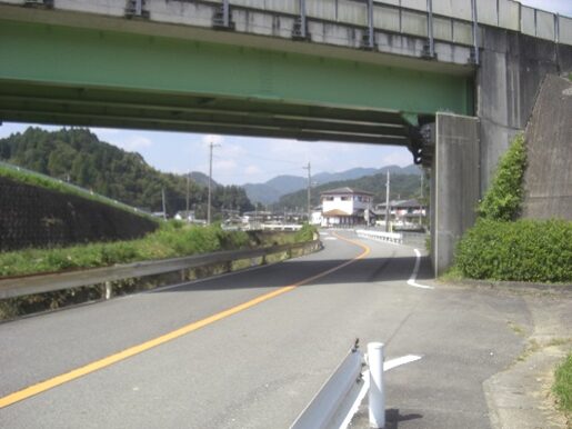 173号線の道に出るので高架下(正面右の狭い方の桁の下の旧道を抜ける)高架は173号線のバイパス