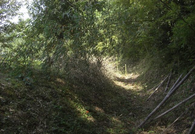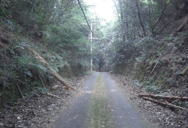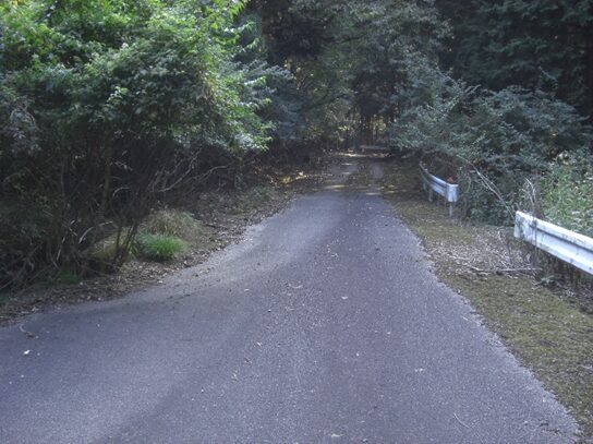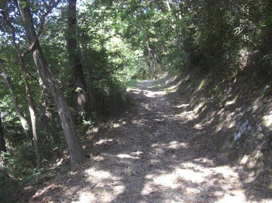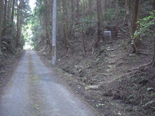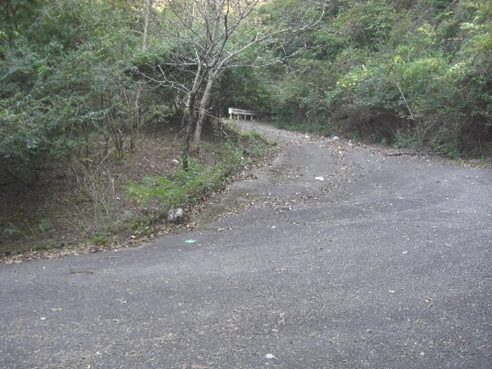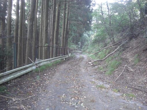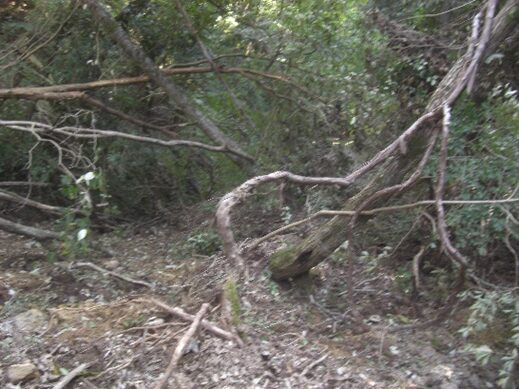 この辺りに下からの旧道が真っ直ぐ登ってきていたようだ、やはり途中で旧道は廃道化しているのだろう