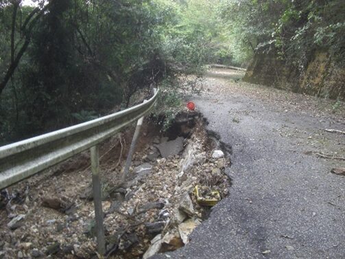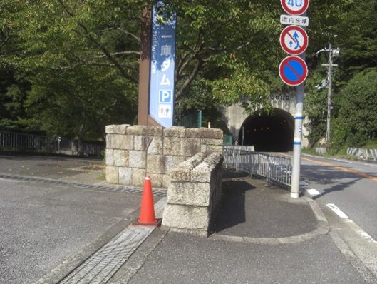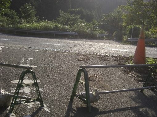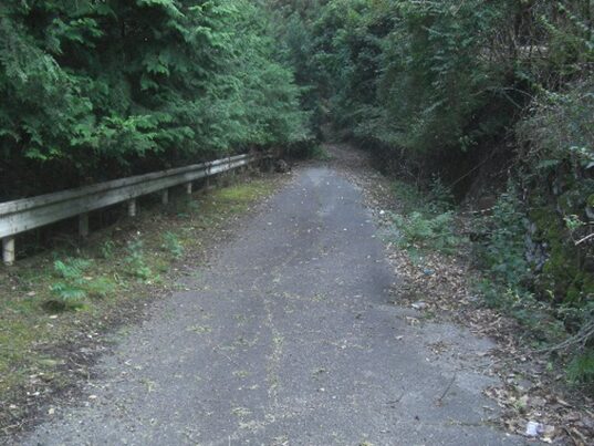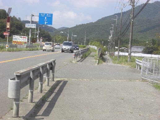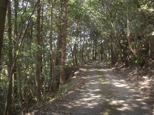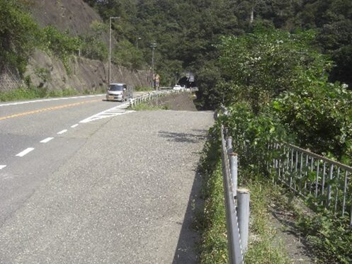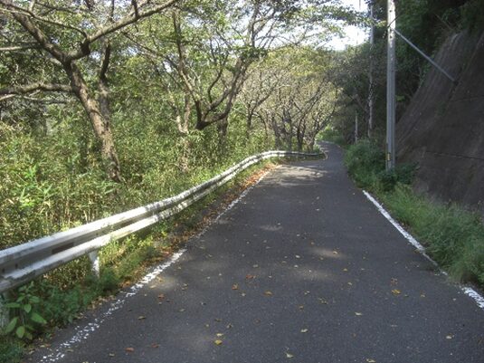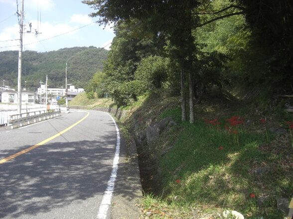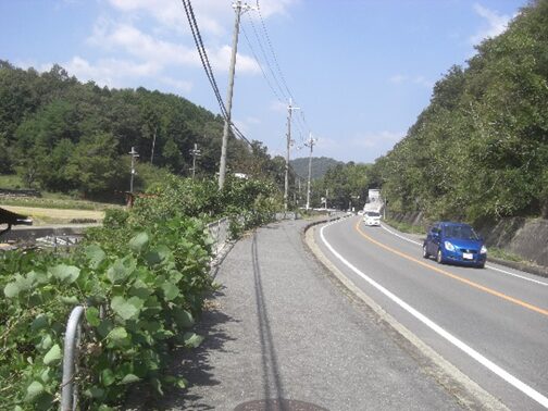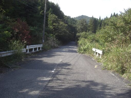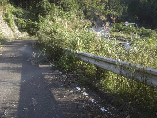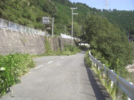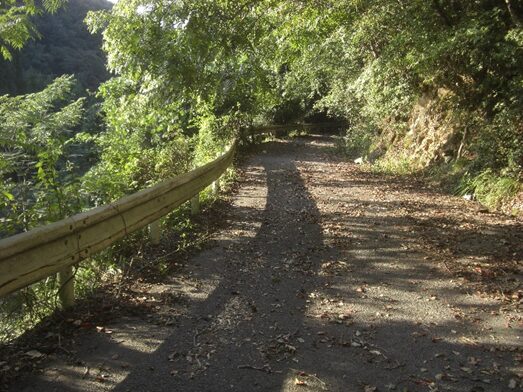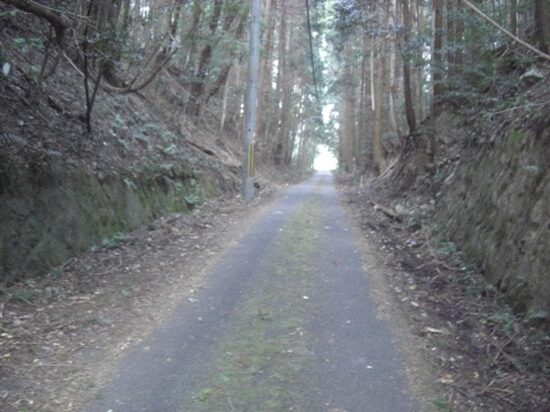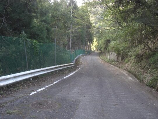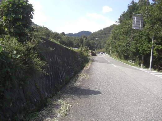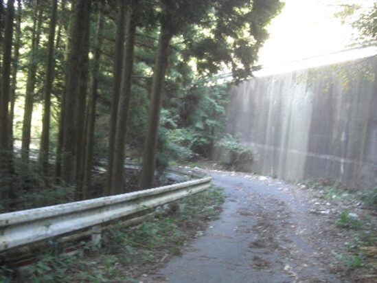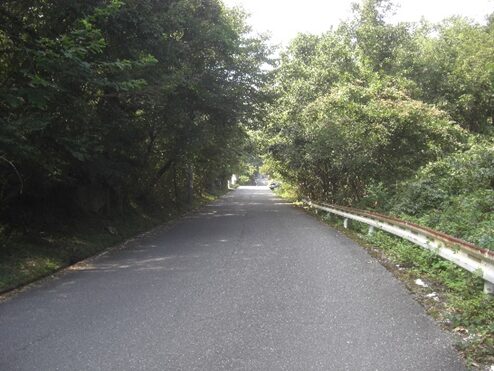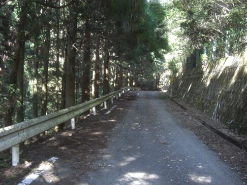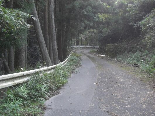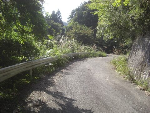 路肩が崩れているがおそらくもう使用済みの道なので補修もしないで荒れるに任せるのだろうか。何とか整備しながら昔の街道道として残してほしい