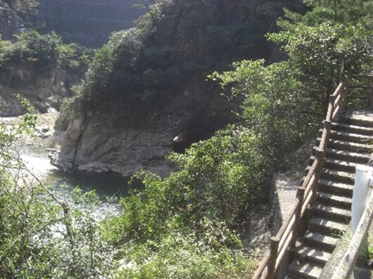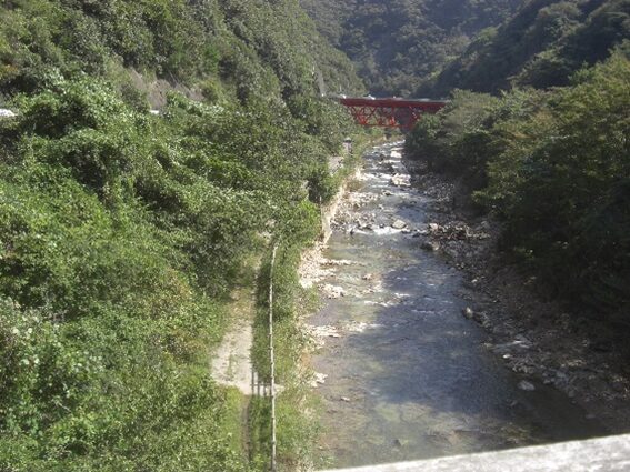 対岸を見る、対岸の方が道は厳しかったようで、東側を歩いたのが正解。道としては対岸の方が古いようです