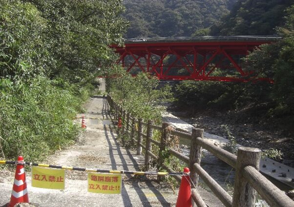 雨の時など特に一人歩きは危ない倒木の下を潜ったり大変だ