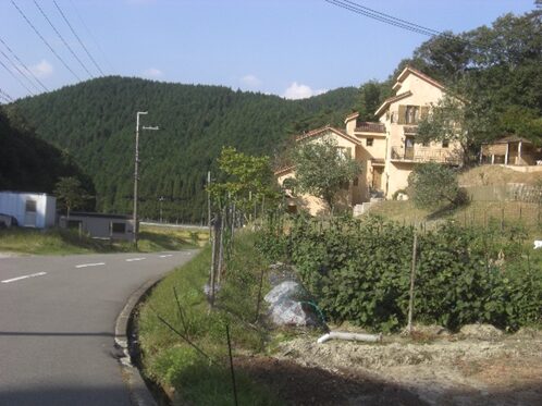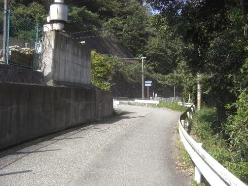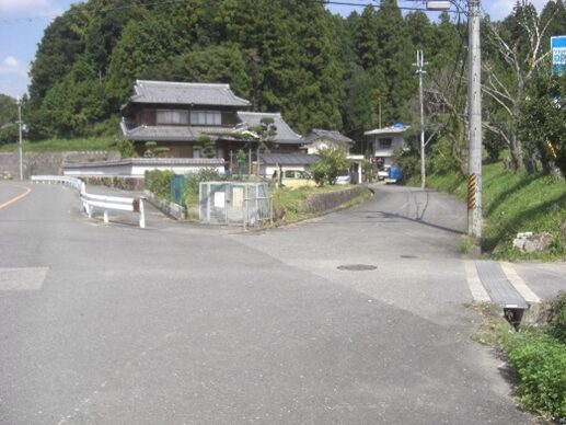 T字路をひだりに進むが、T字路の少し右に折れたところから南東への道筋を写す。この先が173号線に出る所で、少し前の辻で173号線が正しいか山側が正しいか迷ったところに出る