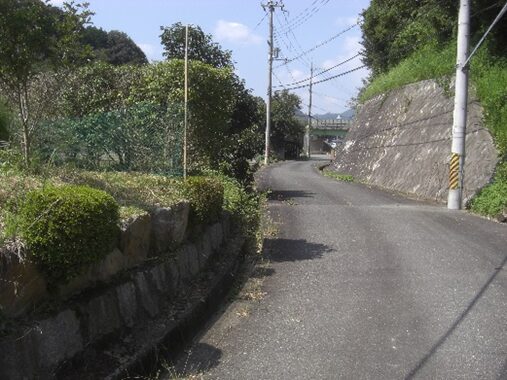 右に入り(寄り道)をする、小さな川を渡り電鉄線を越えると高台に上る
