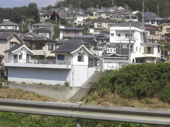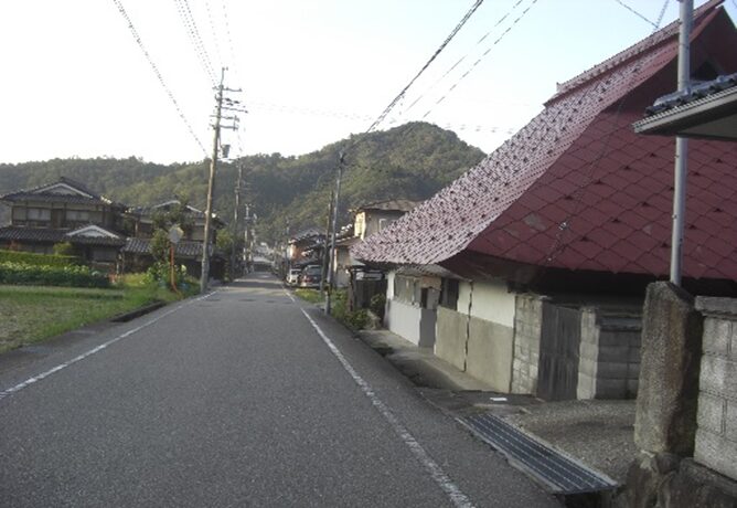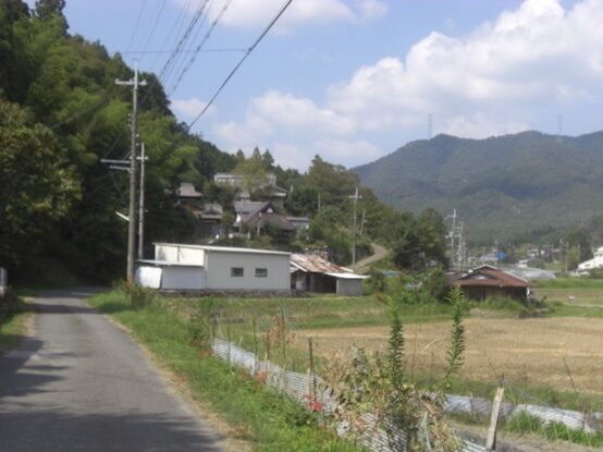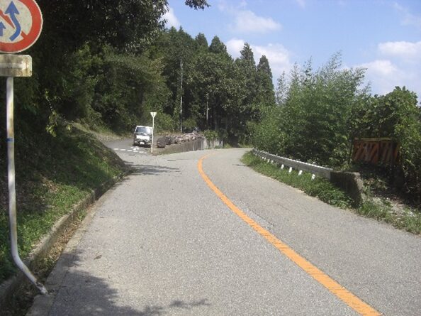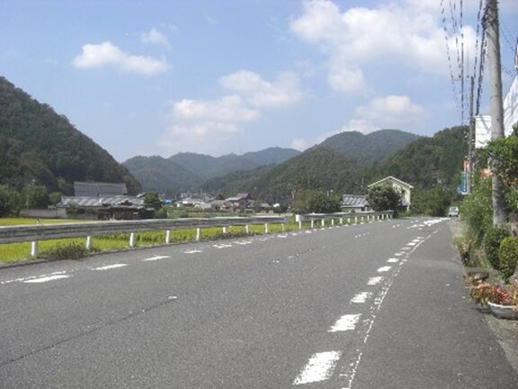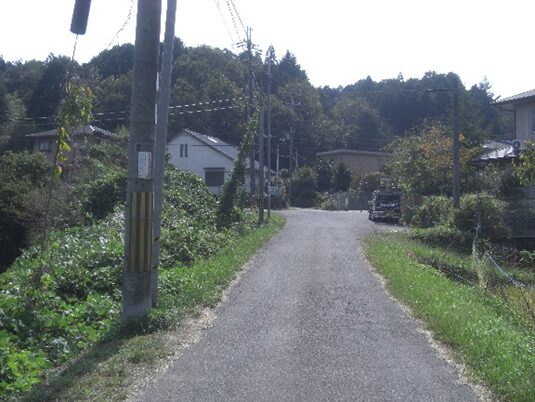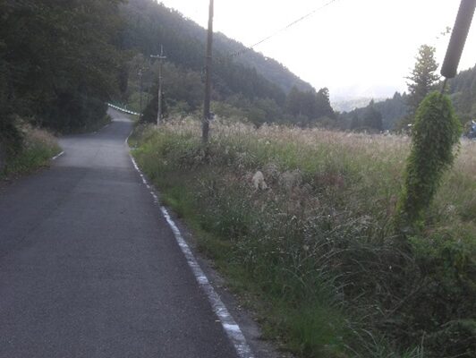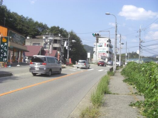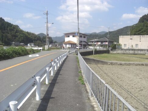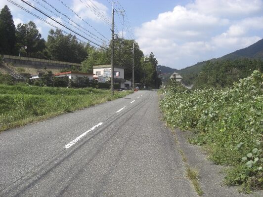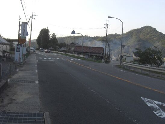 池の先の街道でやっと少し民家が見えてきた、長い山間の街道であった