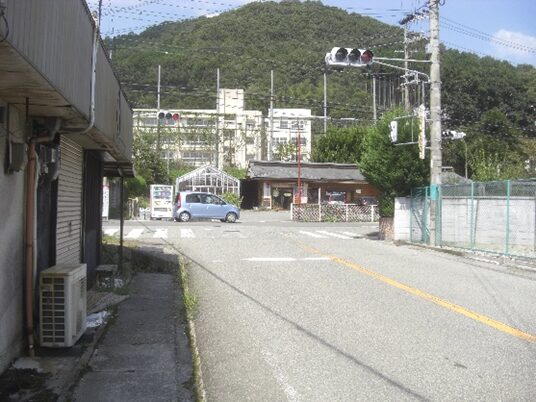 合流点のT字路近くにある、篠山線福住駅跡 昭和19年に福知山線篠山(現篠山口)駅と福住間が開業し昭和47年に廃止された国鉄篠山線の駅跡