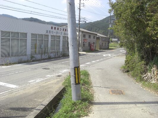交差点を横断して10mほどでT字路に出るので左に折れて旧道を進む