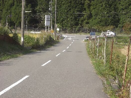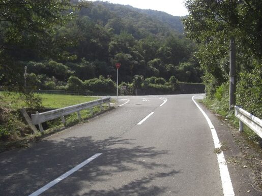 峠からの下りは真っ直ぐ北に延び近くに民家が