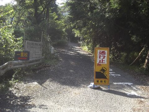右の旧道を入ると間もなく、今度も通行止めの標示何か薄暗く気味が悪い