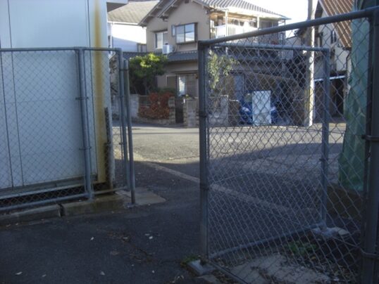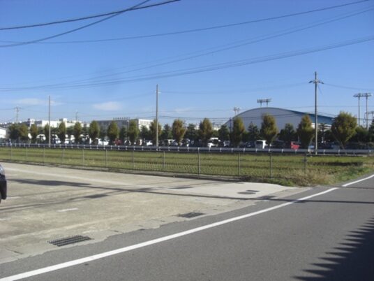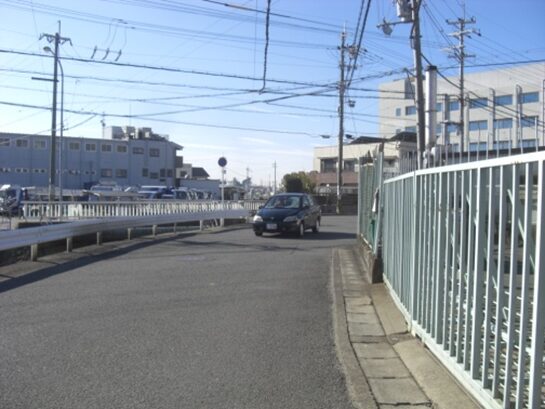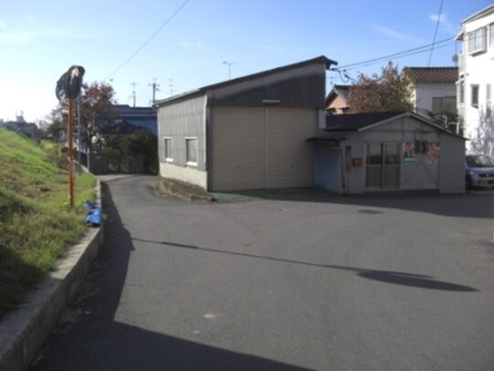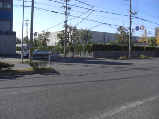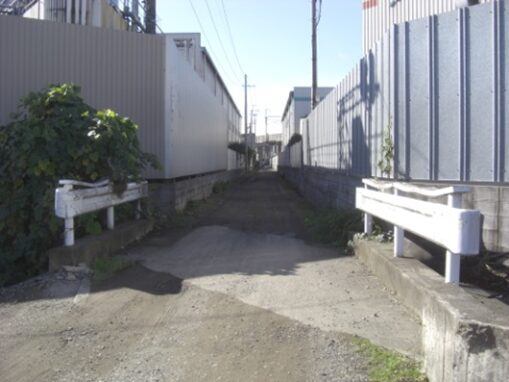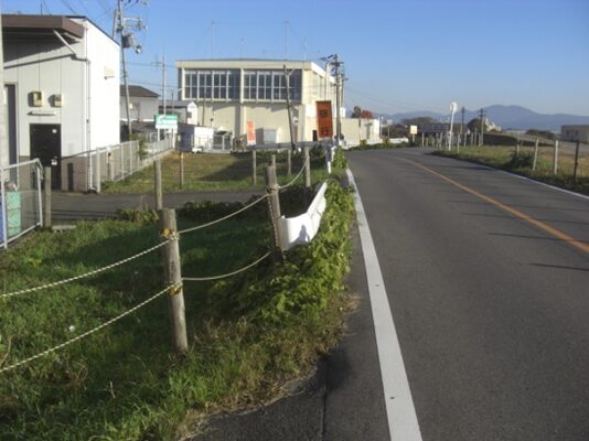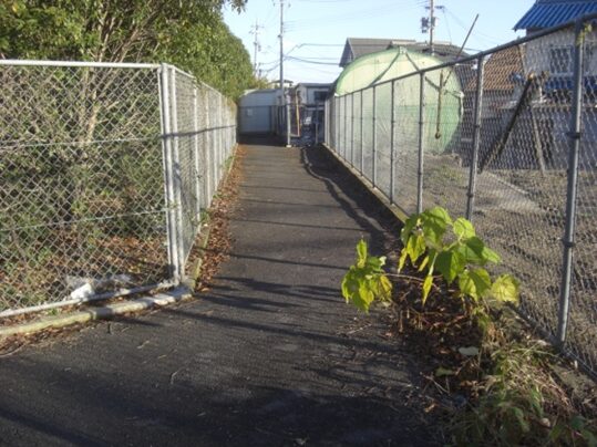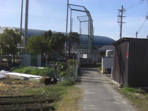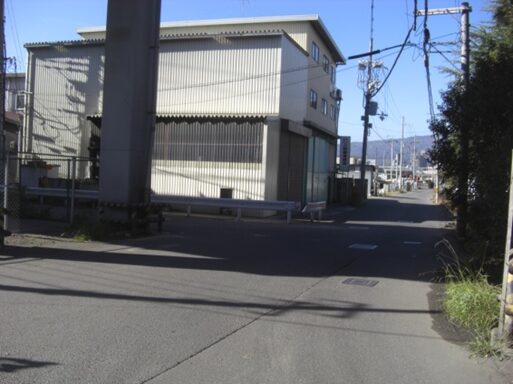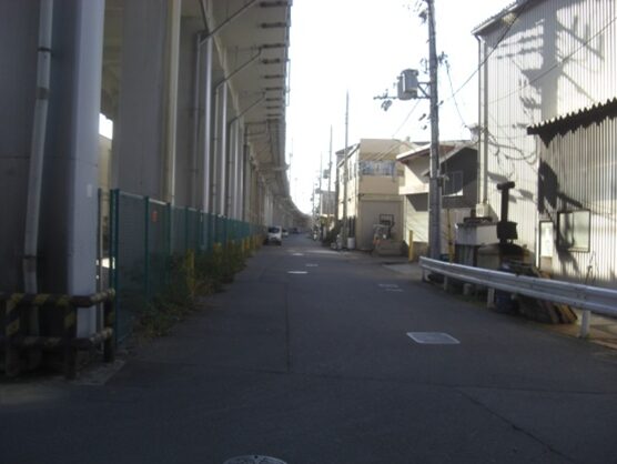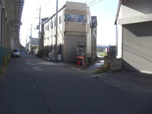 左にサンミック工場に沿い西に進んだ先で工場が切れた角を左に