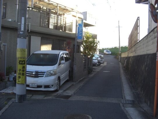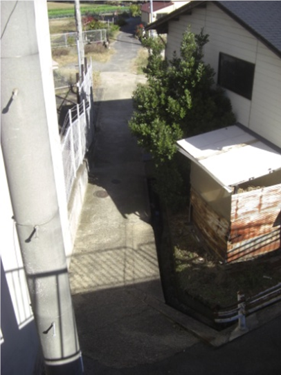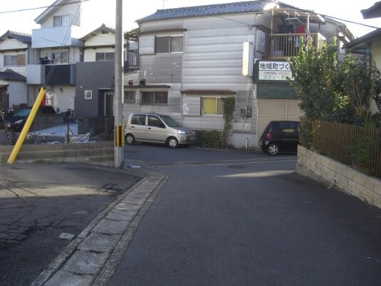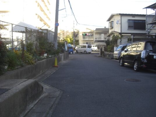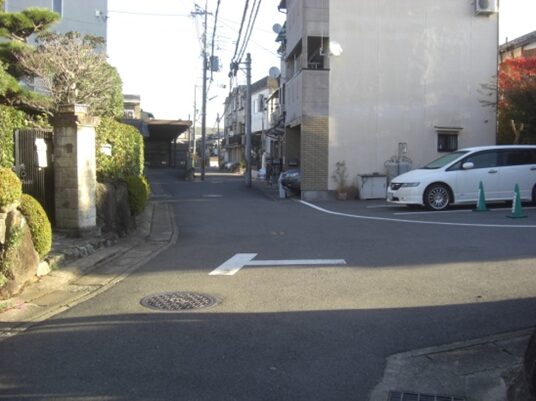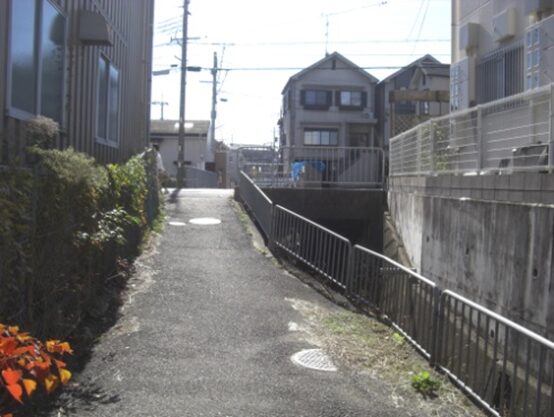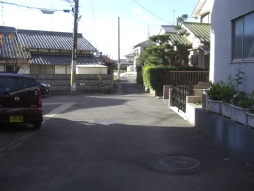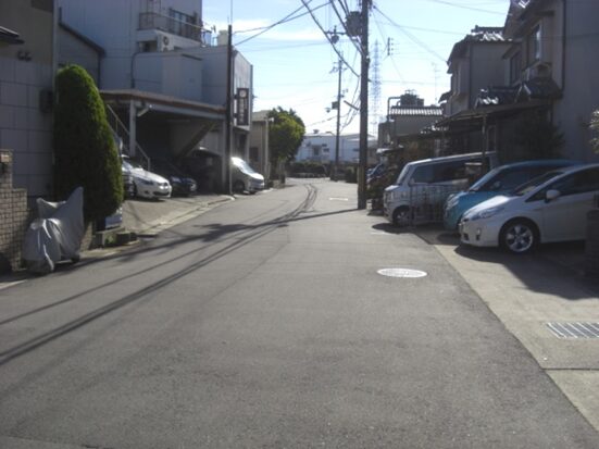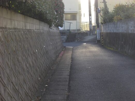 斜め右の道も建物と建物の間の見落としがちな細い道、八ノ坪