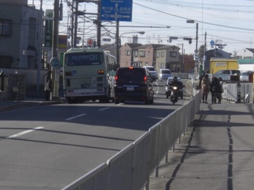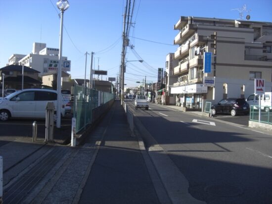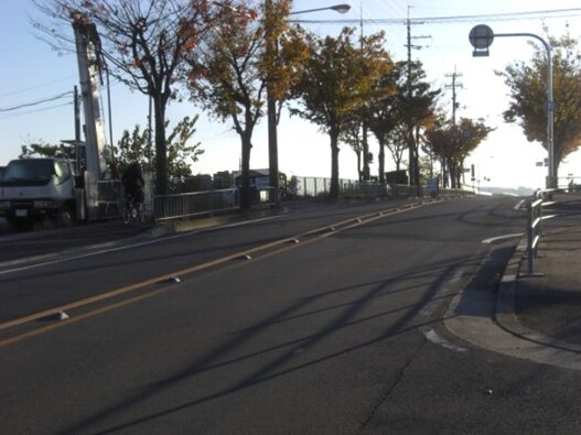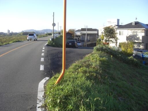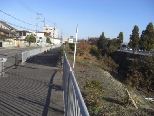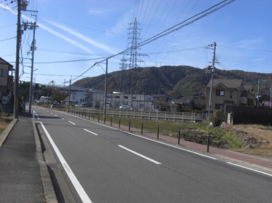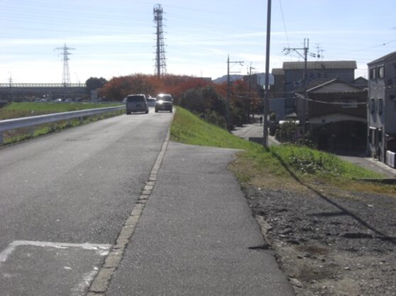 水垂町の堤防下の道、左一帯は新興住宅が建ち並ぶ