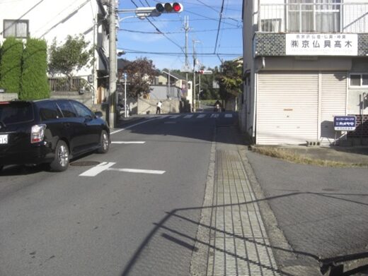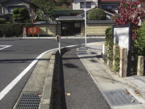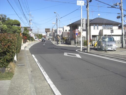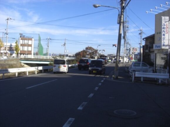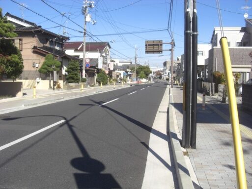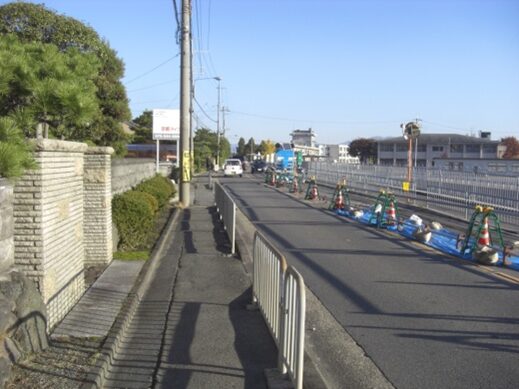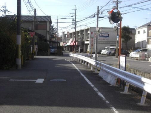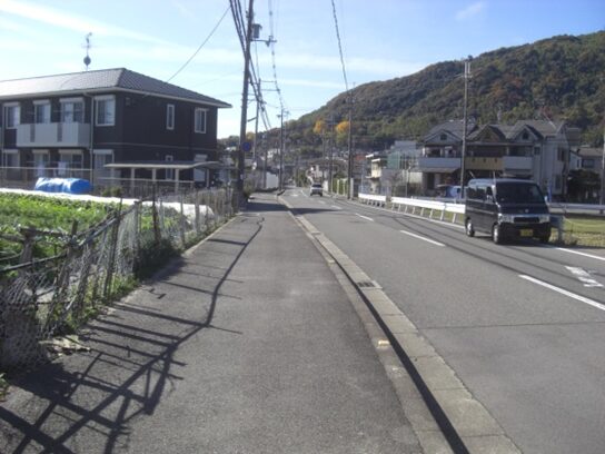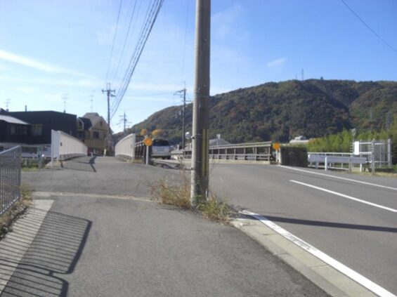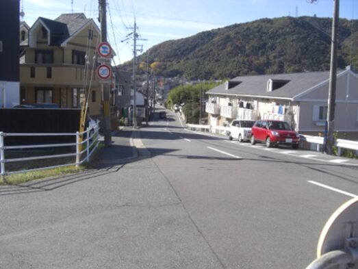 この辺りで右斜めに旧道があったが住宅で消失迂回