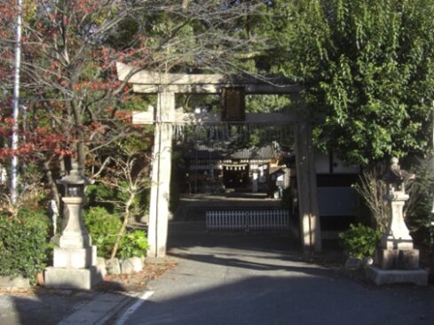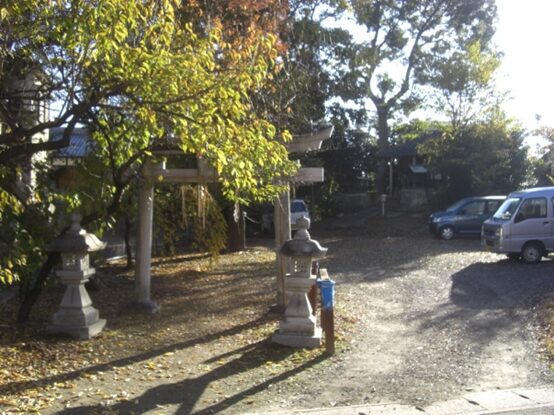 天満宮より街道よりに一筋寄ったところに、鳥居があり北への参道が続きその先が 羽束師神社