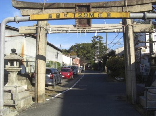 鳥居の前の桁下注意の標示が何となく違和感がある