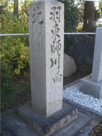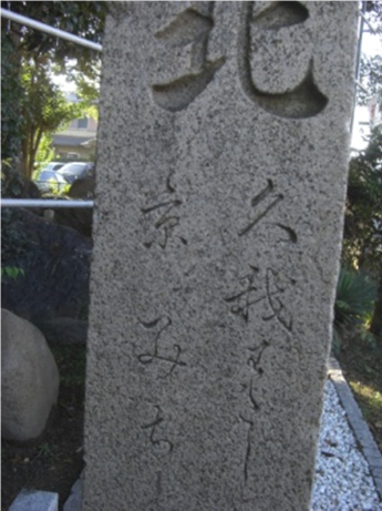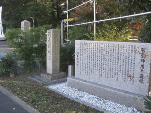 西陣伊佐町の井上傳兵衛氏は為猛翁の偉業を後世に伝えんと、久我畷四ッ辻にこの道標を建 立された。その後、神社境内に昭和五十五年に現地に移設した。(羽束師神社説明碑より)