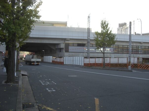 淀駅の北側(南側は淀競馬場)の駅前から北に延びる広い自動車道を進む。