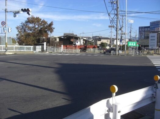 納所交差点を真っ直ぐ横断、右鋭角に折れるのが 京街道、右斜めに進むのが 鳥羽街道で分岐点