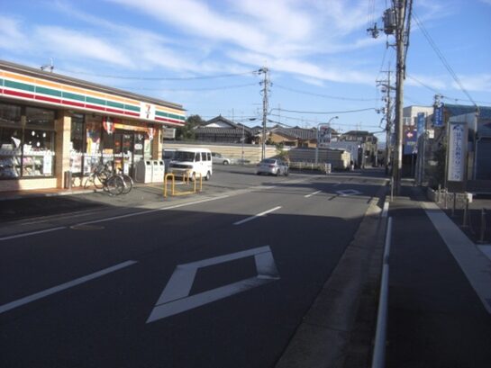 久我森の宮町の信号交差点を進み、左のセブンイレブンの前を通る