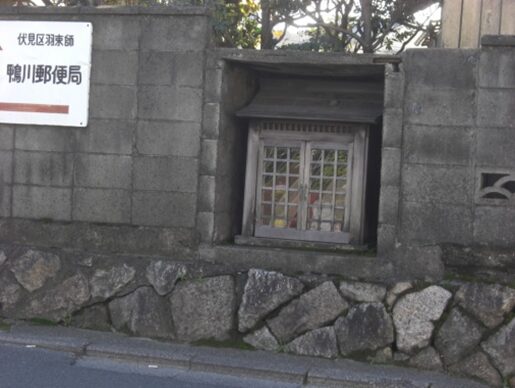 菱川の信号交差点に戻り羽束師川に架かる羽束師橋を渡る。川の東岸を往路は進んできたがここで分岐、川を渡り右に神川中学、更に北には羽束師小学校がある、少し進むと右に羽束師菱川局があるのでその手前を水路に沿って南の折れる