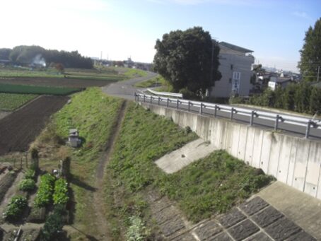 落合橋を渡って左に折れすぐに堤防より右への下る道を進む