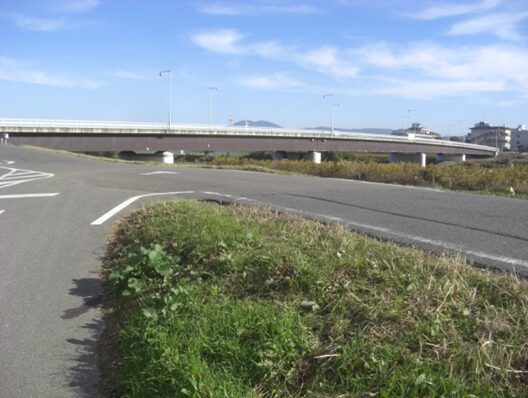 宮前橋を渡った北詰、淀水垂交差点を越えたすぐの堤防下の道を右に折れる
