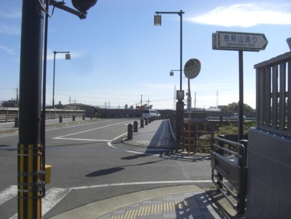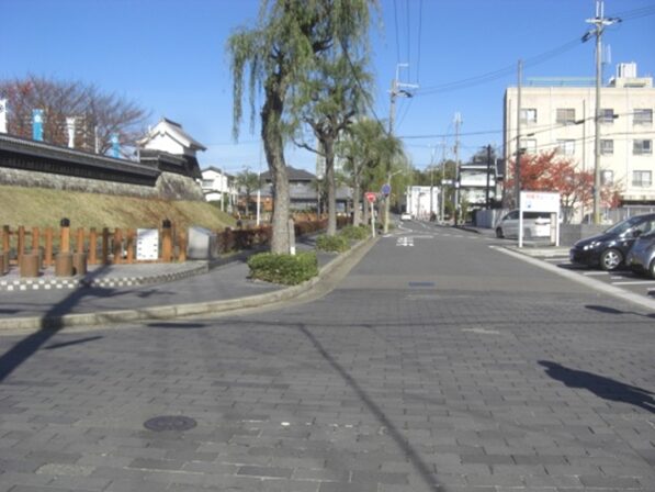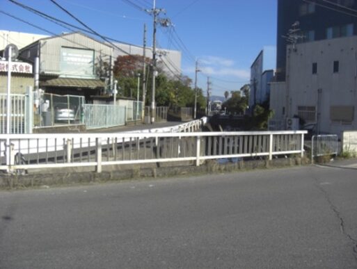 大手橋を渡り小畑川に沿って右に折れすぐ先の、バス停と橋のある交差点を左に折れて東に進む