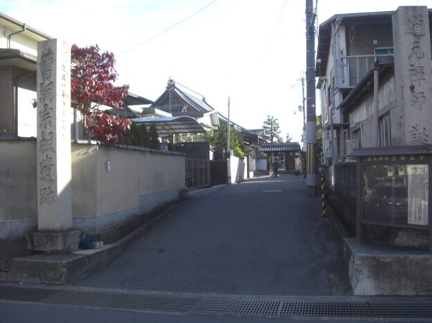 久我交差点を右に折れる手前右手に 曹洞宗誕生寺 参道入り口左に、曹洞宗祖遺跡の碑 右に 道元禅師誕生地の碑
