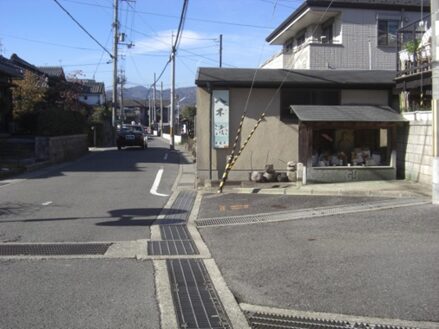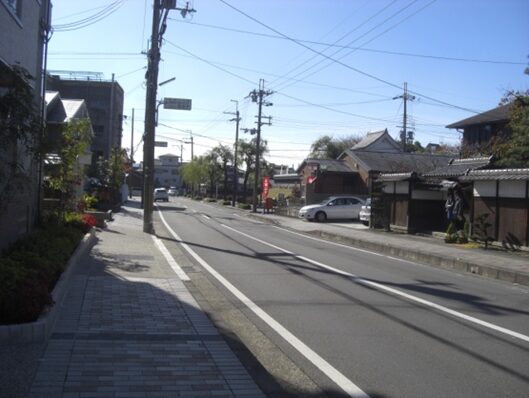 引き続きこの地点から西国街道を(北)京都方向に歩き、栗生路の起点へ移動して歩く。(大山崎付近については別途、西国街道に詳細)