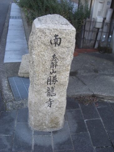 右に 真言宗恵解山勝竜寺 大きな石碑本尊は十一面観音で鎌倉時代の作で重要文化財。また同時代作の十一面観音像、聖観音像、持国天像、多聞天像は市指定文化財