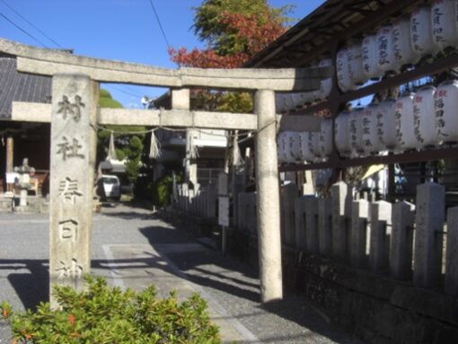 お寺の隣に村社、春日神社 平安時代末の承安四年(1174)九条兼実による建立と伝わる