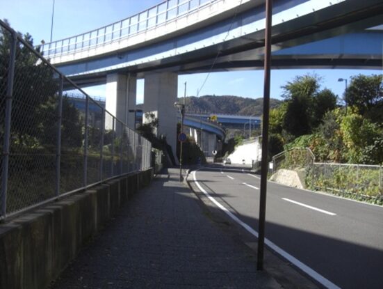 暫く先で名神高速道路にでるので交差点で左に折れて高架を潜る