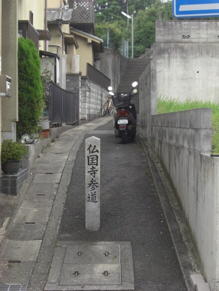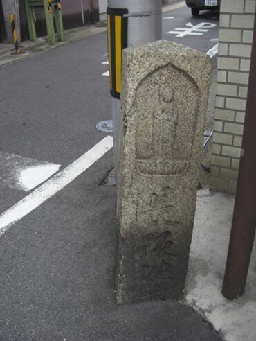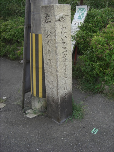 境内に移されてきた 道標 「右 ならかいどう 左 一言寺」