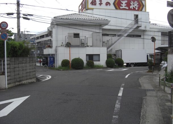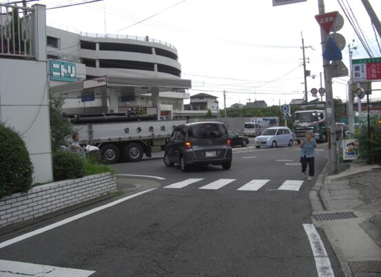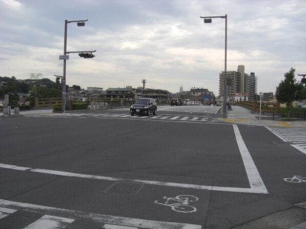 左に折れる交差点