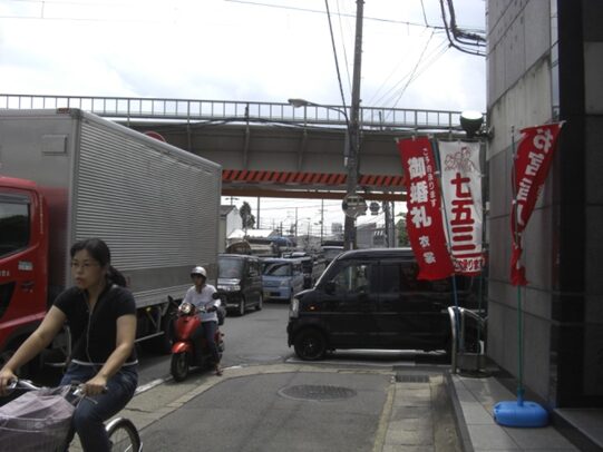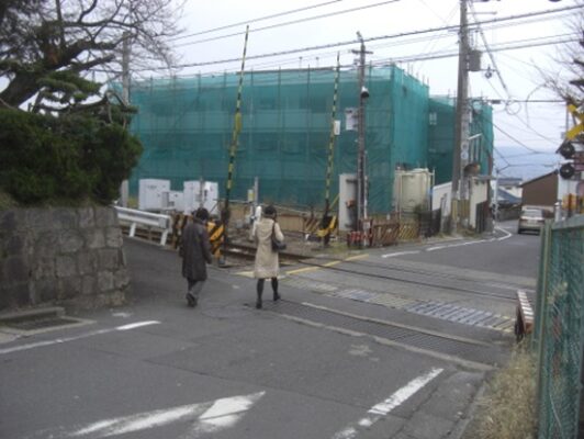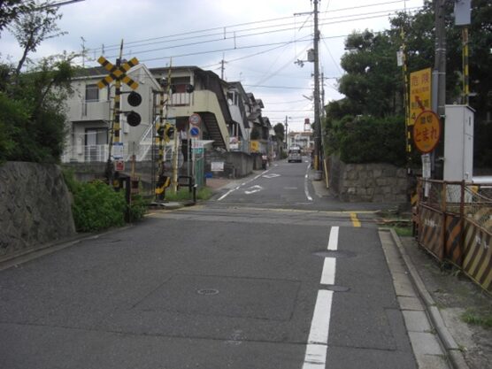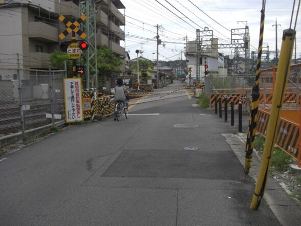 伏見区深草、JR奈良線の踏切を越える。左にJR藤森駅