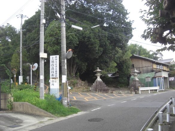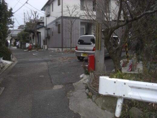 西へ250m程進むと道は左に折れる辻に出ます