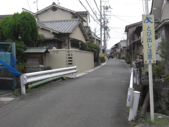 三室戸駅を抜けたところで左の京阪宇治線の踏切を渡り東側に出る