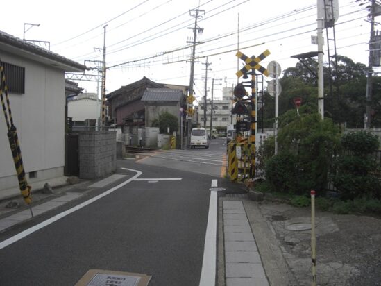 踏切を左に渡る