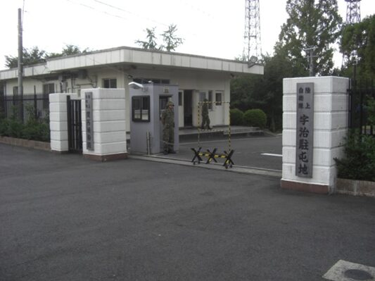 右手に陸上自衛隊宇治駐屯地がある