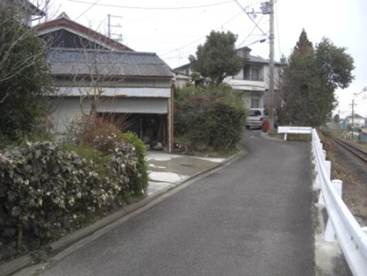 JR藤森駅から線路沿いに緩やかな坂を下って来たところを下から振り返る