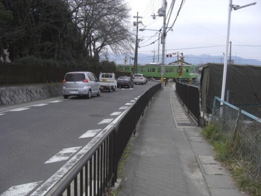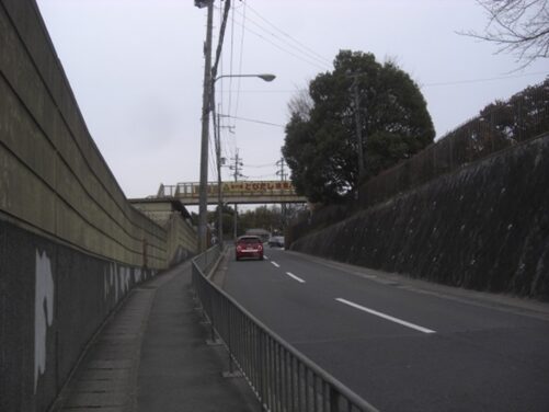 今回は、踏切を渡ると線路沿いに右に折れ緩やかな坂を少し上る