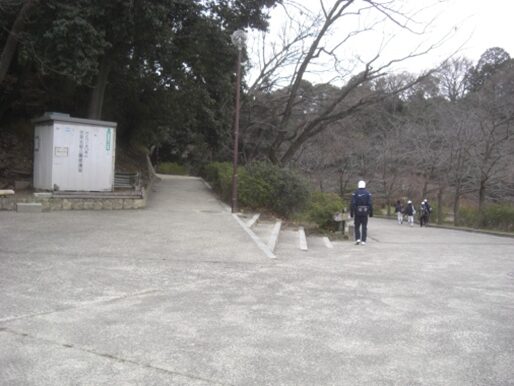 正面に現在の桃山城の出入口が見えてくる。出入口の前で左に折れる
