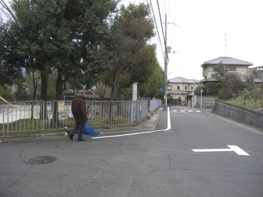 深草大亀谷安信町の住宅地内を下っていく,右の公園