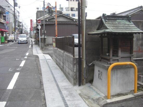 西方寺から少し進んだ左手にある 祠 を振りかえる